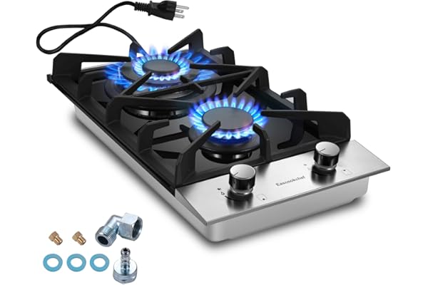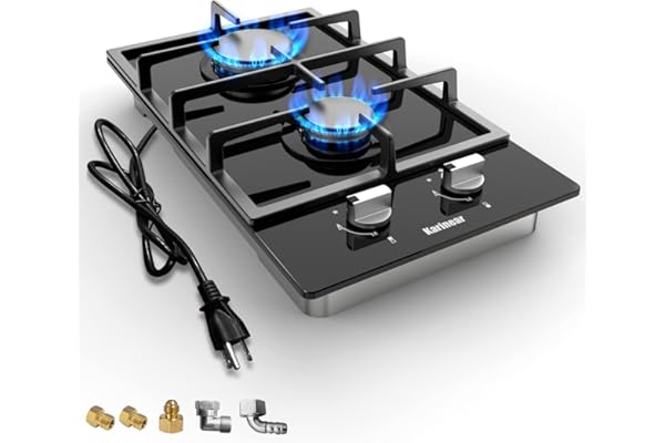 12 In Gas Stove Top Gas Cooktop 2 Burners, Built-in Gas Hob Suitable for Dual Fuel LPG/NG, Thermocouple Protection, Easy Clean, indoor Gas stove for Apartment,110V