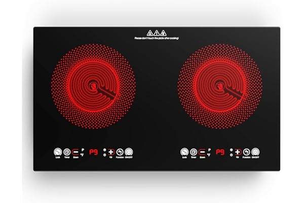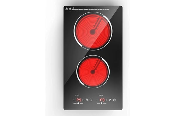 12 Inch Built-in Radiant Electric Stove Top, 110V Ceramic Electric Stove with 2 Burners, 9 Heating Level, Timer & Kid Safety Lock, Sensor Touch Control