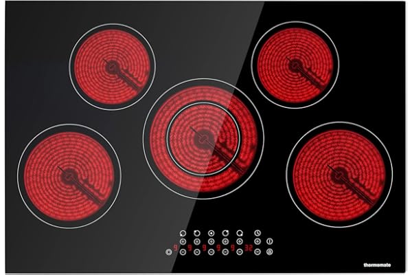 thermomate 30 Inch Built-in Radiant Electric Stove Top, 240V Ceramic Electric Stove with 5 Burners, 9 Heating Level, Timer & Kid Safety Lock, Sensor Touch Control
