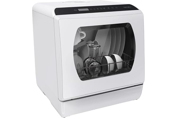 Mini dishwasher with a Built-in 5L Water Tank, No Hookup Needed, 5 Washing Programs, Extra Dry Function for Apartments, Camping and RV, White