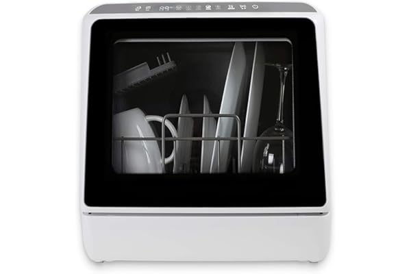 Farberware Professional FCD06ABBWHA Compact Portable Countertop Dishwasher with 6 Place Settings and Silverware Basket