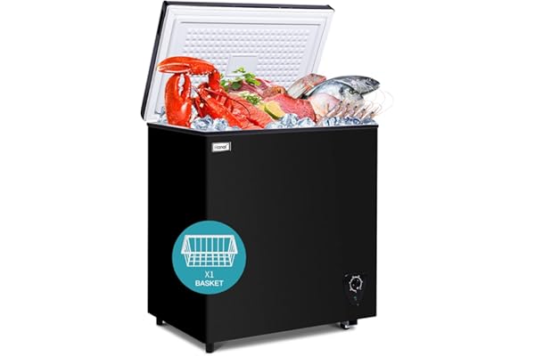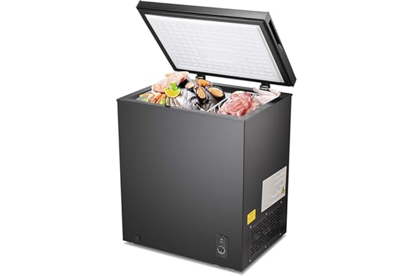 Chest Freezer Small Freezer Black Deep Freezers 3.5 Cu.Ft Compact Freezer Free-Standing Top Door Freezer Adjustable 7 Thermostat and Removable Basket Open Deep Freezer Energy Saving Garage Basement Apartment Kitchen Business
