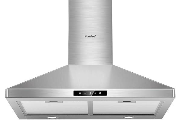 Comfee CVP30W7AST 30 Inch 450 CFM 3 Speed Gesture Sensing &Touch Control Panel Stainless Steel Wall Mount Ductless/Ducted Convertible Vent Baffle Filters and 2 LED Lights Range Hood