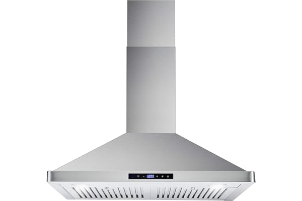 Ceiling Chimney-Style Stove Vent, LEDs Light, Permanent Filter, 3 Speed Fan in Stainless Steel (30 inch)