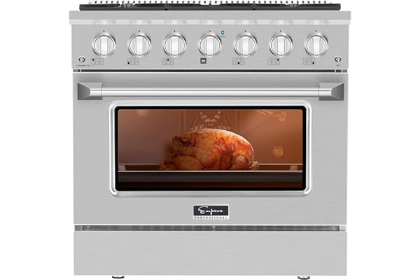 Empava 36 Inch Pro-Style Slide-in Single Oven Gas Range with 6 Sealed Ultra High-Low Burners-Heavy Duty Continuous Grates in Stainless Steel