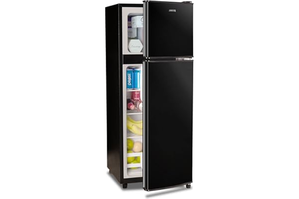 Double Door Mini Fridge, Large Capacity Mini Fridge, Adjustable Thermostat, Mini Refrigerator for Dorm, Office, Bedroom, Black-BR401