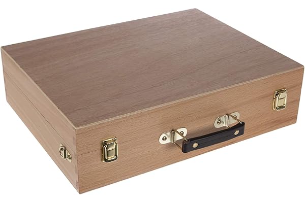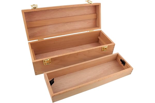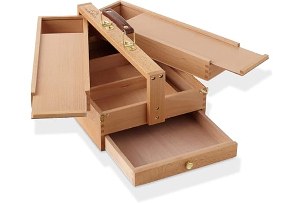 Portable Foldable Multi-Function Beech Wood Artist Tool & Brush Storage Box with Compartments & Drawer for Pastels, Pencils, Pens, Markers, Brushes