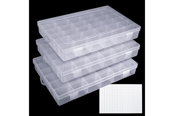 UOONY 3 Pack 36 Grids Plastic Organizer Box Craft Storage with Adjustable Dividers