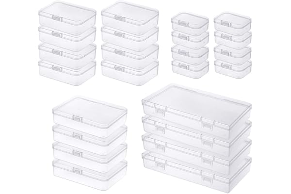 24 Pieces Mixed Sizes Rectangular Empty Mini Clear Plastic Organizer Storage Box Containers with Hinged Lids for Small Items and Other Craft Projects