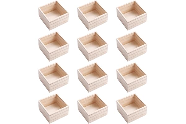 12 PCS 4'' x 4'' Rustic Wooden Box Storage Organizer Craft Box for Collectibles Home Venue Decor Succulents