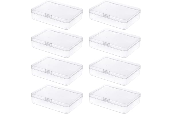 8-Pack Rectangular Plastic Storage Containers Box with Hinged Lid for Beads and Crafts