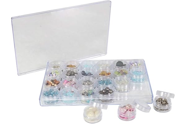 Everything Mary Large Plastic Bead Storage Organizer Box, 24 Jars