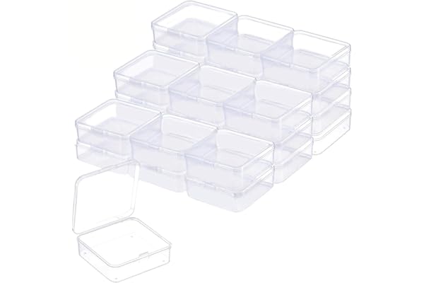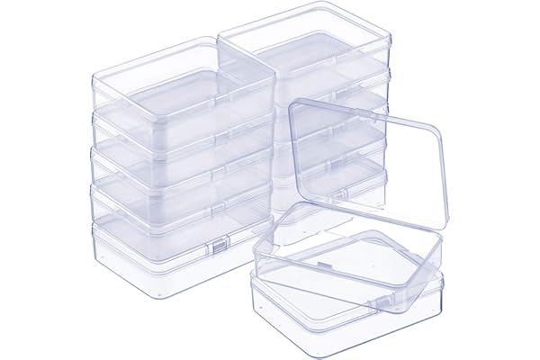 SATINIOR 12 Pack Clear Plastic Beads Storage Containers Box with Hinged Lid for Beads and More (4.45 x 3.3 x 1.18 Inch)