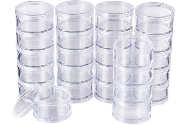 BENECREAT 15G/30ML Stackable Round Plastic Containers 5 Column(5 Layer/Column) Bead Storage Jars Box for Beads