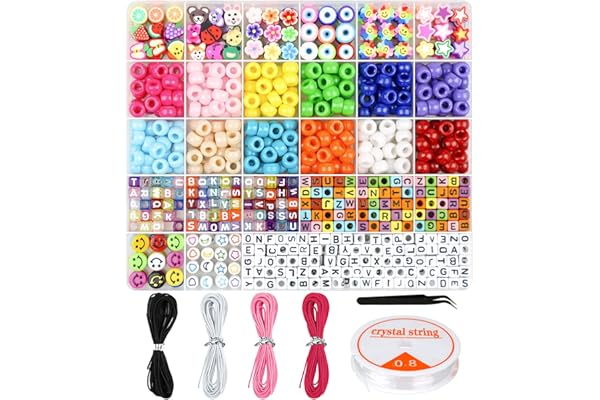 Beads for Bracelets Making Pony Beads Polymer Clay Beads Smile Face Beads Letter Beads for Jewelry Making, DIY Arts and Crafts Gifts for Girls Age 6 7 8 9 10-12