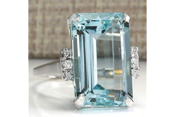 Zhiwen Vintage Fashion Women 925 Silver Aquamarine Gemstone Ring Engagement Wedding Jewelry Size 5-11 (7#)