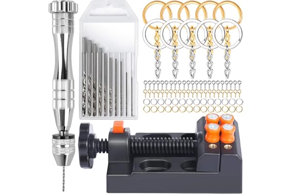LEOBRO Steel Hand Drill with 10 PCS Drill Bit, Drill Press Vise, 210 PCS Keychain Supplies, Precision Hand Drill Kit for DIY Resin Keychains Jewelry Making
