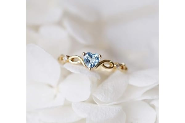 Cuteshop 14k Gold Sea Blue Topaz Love Heart CZ Diamond Ring Women Anniversary Engagement Wedding Gemstone Ring (8)