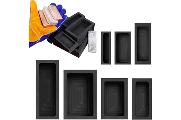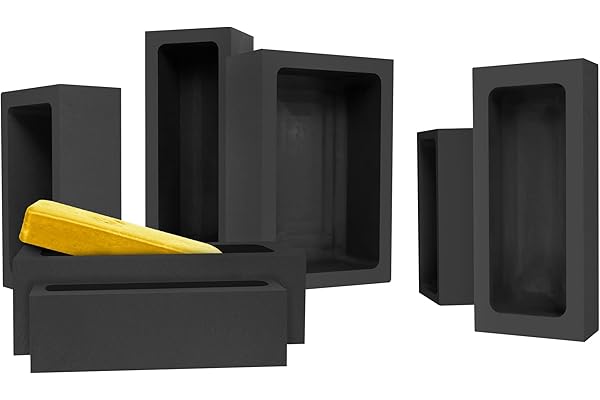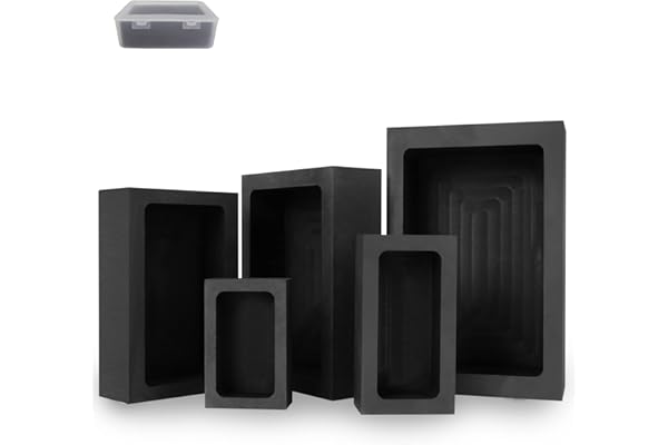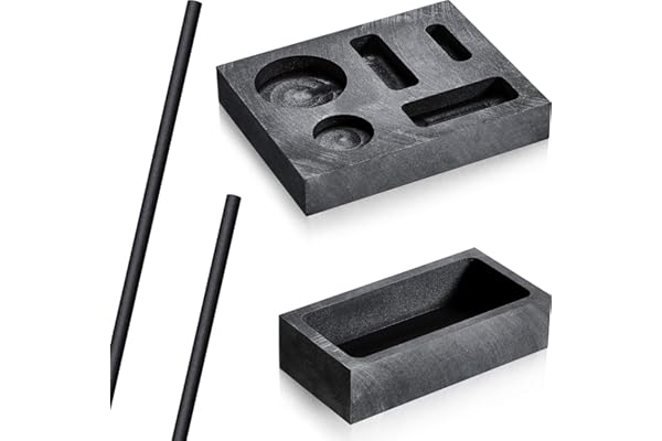 5-in-1 Graphite Casting Ingot Mold Coin Combo Metal Refining Scrap Mold, 1 KG Graphite Ingot Crucible Mould, 2 Graphite Stir Rod Stick for Melting