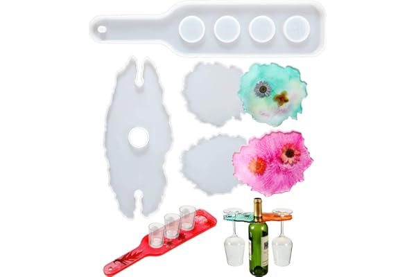 Baderke Wine Glass Serving Tray Mold Wine Rack Mold Beer Paddle Serving Tray Epoxy Resin Mold Whiskey Tasting Serving Tray with 2 Coaster Mold for Home Decoration DIY Crafts and Handmade Present