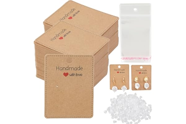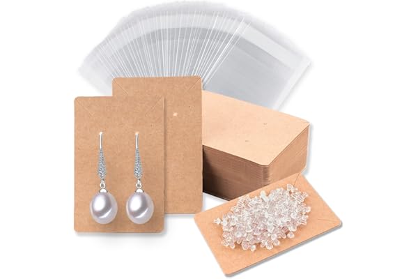 Anezus 100 Pcs Earring Display Cards Earring Holder Cards with 200 Earring Backs and 100 Self- Sealing Bags for Earrings Necklace Jewelry Display, Kraft Color 3.5x2.4 Inches