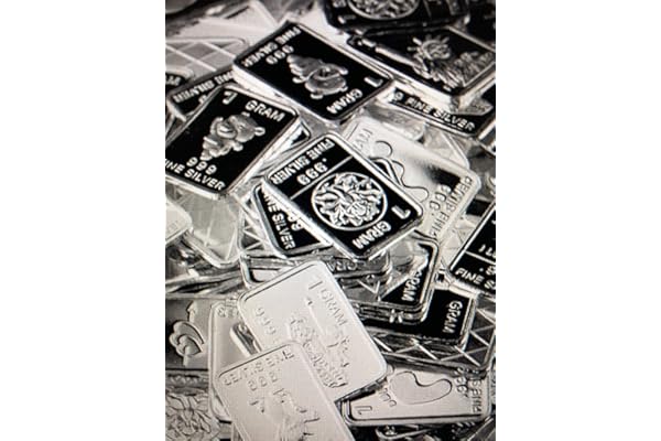 TEN One Gram .999 pure Silver Bars with random designs in a jewelry pouch (Original Version)