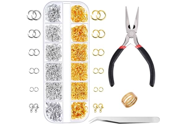 Paxcoo 1200Pcs Open Jump Rings and Lobster Clasps Jewelry Findings Kit with Pliers for Jewelry Making (Silver and Gold)