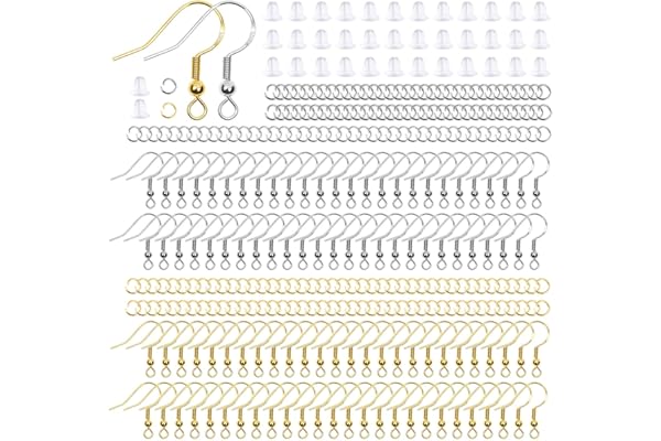 Thrilez 600Pcs Earring Making Kit with Hypoallergenic Earring Hooks, Jump Rings and Clear Rubber Earring Backs for DIY Jewelry Making (Silver and Gold)