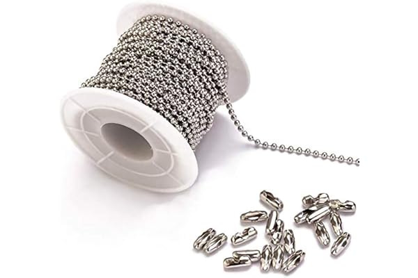 Jishi 33ft Ball Chain 2.4mm Silver Stainless Steel Bead Link Chain Roll for Beaded Dog Tag Necklace, Mens Military Jewelry Making Supplies, Pull Chain DIY Bracelets Keychain Craft