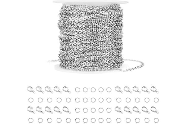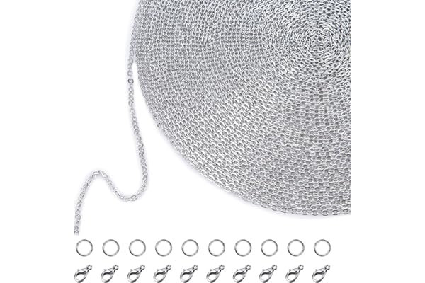 WXJ13 36 Feet Silver Stainless Steel Link Cable Chain with 20 Lobster Clasps and 30 Jump Rings for Men Women Jewelry Chain DIY Making