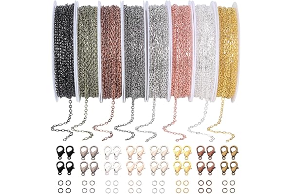 8 Colors Jewelry Making Chains 2 mm Metal Chains with Open Jump Rings and Lobster Clasps for Jewelry Making DIY Necklace Bracelet Anklet