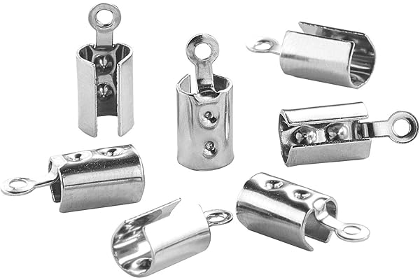 304 Stainless Steel Fold Over Cord Ends Cord Crimp End Tips Fold-Over End Caps Leather Ribbon Ending Clasp Tips Jewelry Connector for Jewelry Making