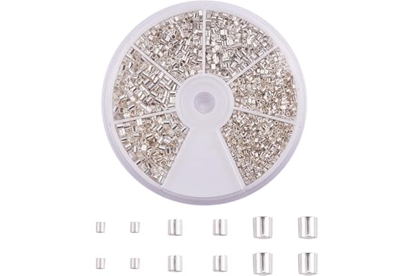 3000 Pcs 1.5mm 2mm 2.5mm Brass Tube Crimp End Spacer Beads Cord End Caps Loose Stopper Beads for Earring Necklace Pendant DIY Jewelry Making, Silver