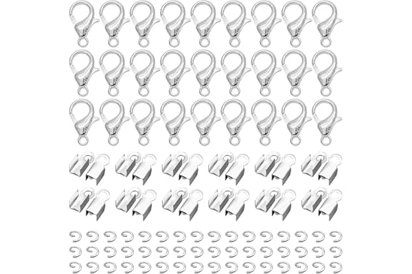 Jewelry Making Accessories Set Includes 100Pcs Lobster Claw Clasps 200Pcs Jump Ring 200Pcs Cord Clamp Ends Crimp for Leather Ribbon