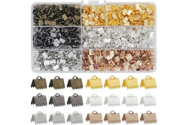 Auvoau 600Pcs 6 Color Ribbon Ends for Jewelry Making Finding