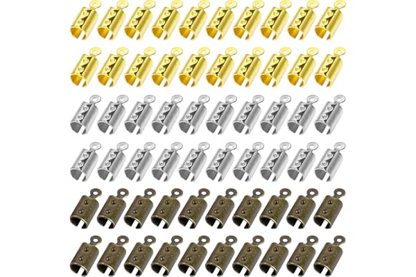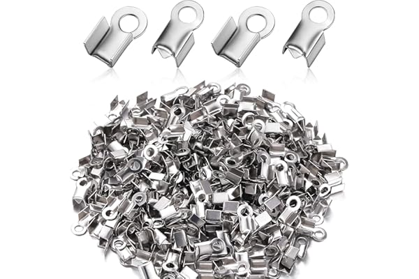 1000 Pieces Fold Over Cord Ends Cord Crimp End Tips Fold-Over End Caps Leather Ribbon Ending Clasp Tips Jewelry Connector for Jewelry Making
