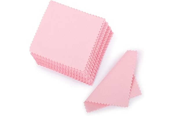 SEVENWELL 50pcs Jewelry Cleaning Cloth Pink Polishing Cloth for Sterling Silver Gold Platinum Small Polish Cloth 8x8cm