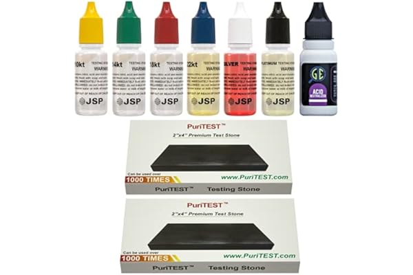 PuriTEST 10k/14k/18k Gold Test Acid Solutions Tester Kit Detect Metals Scrap Jewelry + PRO 2x2" Testing Stone