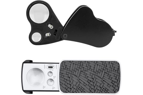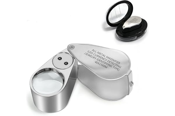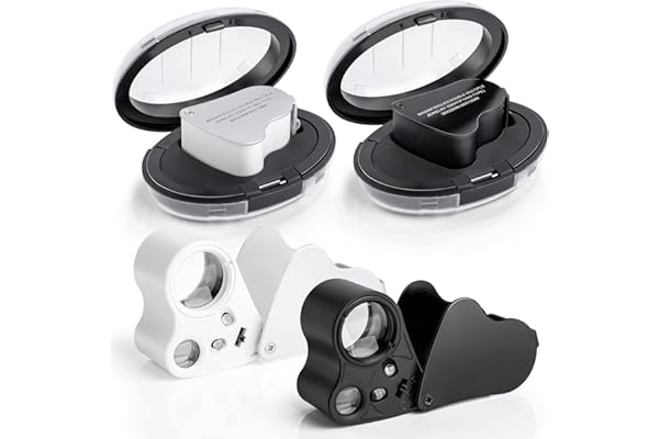 Foldable Jewelry Magnifiers with Bright LED Light for Gems, Jewelry, Coins, Stamps, etc (White & Black)