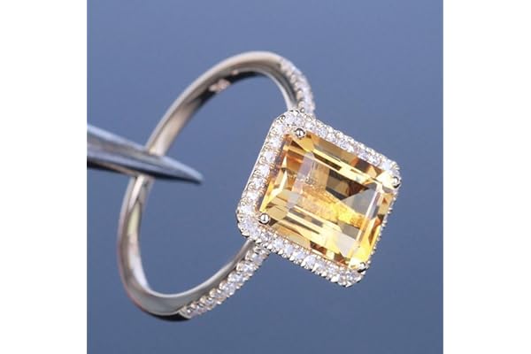 LRESJJIUJ 18K Gold Plated Emerald Cut 4ct Yellow Cubic Zirconia Cocktail Engagement Wedding Anniversary Rings Sterling Silver Yellow Topaz Rings for Women (7)