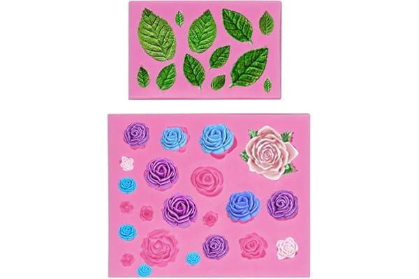 Mity rain Roses Collection Fondant Mold-Rose Flower and Leaves Shapes Silicone Mold for Sugarcraft Cake Decoration