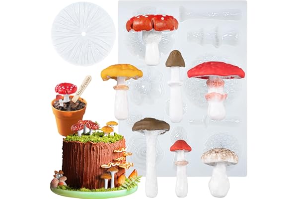 FUNSHOWCASE Life Like Mushroom Polymer Clay Casting Silicone Mold and Veiner for Fondant Cake Decorating