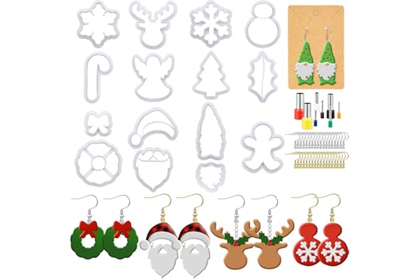 Christmas Polymer Clay Cutters for Earring Making 12 Shapes Clay Cutters Tools for Polymer Clay Jewelry Plastic Clay Earring Cutters with Earring Cards for Christmas Party Polymer Clay Jewelry Making