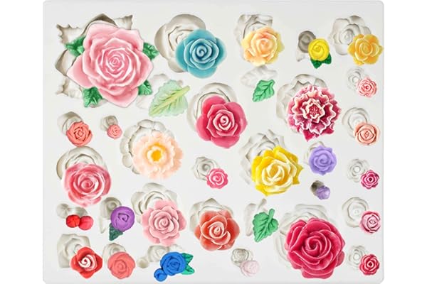 Funshowcase 32 Cavity Roses Flower Fondant Candy Silicone Mold for Sugarcraft Cake Decoration