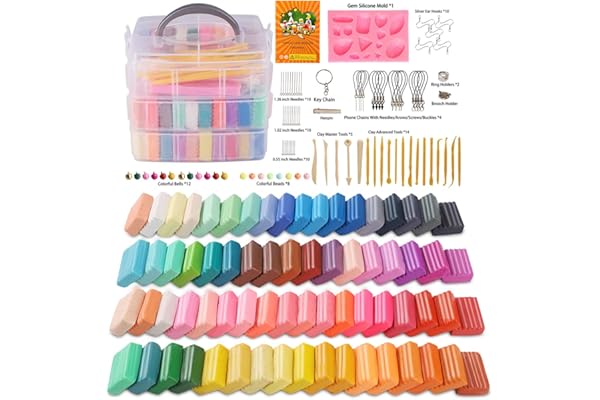 Farielyn-X 60 Colors 1 oz/Block Soft Oven Bake Modeling Clay Kit, 19 Tools and 10 Kinds of Accessories, Non-Stick, Non-Toxic, Ideal DIY Gift for Kids [ Total 4.7LB ]