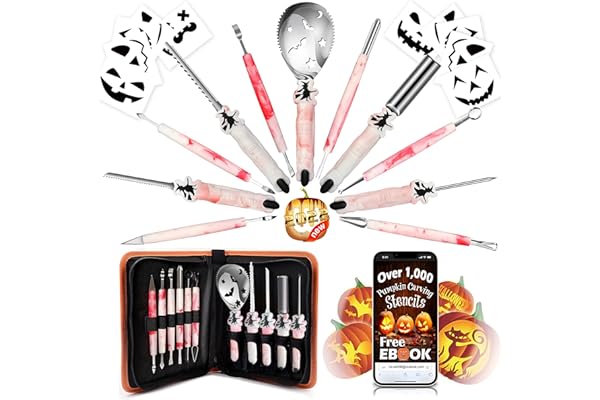 Halloween Pumpkin Carving Kit with Stencils Ebook & Carrying Case