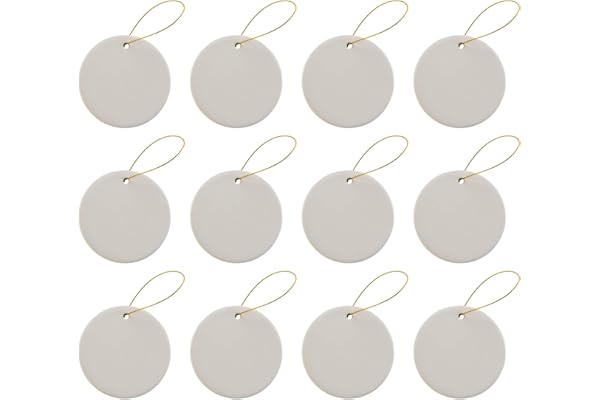 Ready to Paint DIY Ceramic Bisque Round Circle Ornaments with Hanger for Christmas Tree and Holiday Decoration