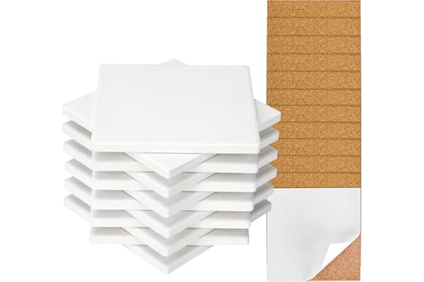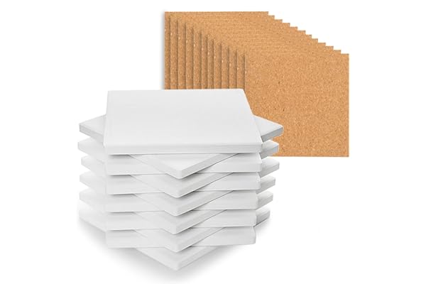 12 Pack White Ceramic Tiles Unglazed 4x4 with Cork Backing Pads, Use with Alcohol Ink or Acrylic Pouring,DIY Make Own Coasters, Mosaics, Painting Projects, Decoupage
