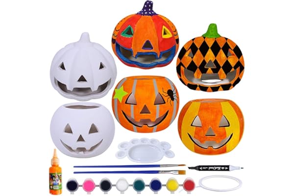 Winlyn 6 Sets DIY Ceramic Pumpkins Jack-o'-Lanterns Figurines Paint Craft Kit Unpainted Bisque Ceramics Pumpkins Ready to Paint for Kids Classroom Art Project Fall Gift Favors Halloween Party Decor