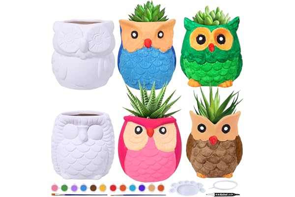 6 Sets DIY Ceramic Owl Succulent Pots Figurines Paint Craft Kit Unpainted Ceramic Bisque Paintable Owl Ceramic Flowerpots with Drainage Hole Ready to Paint for Kids Classroom Craft Project Acticity